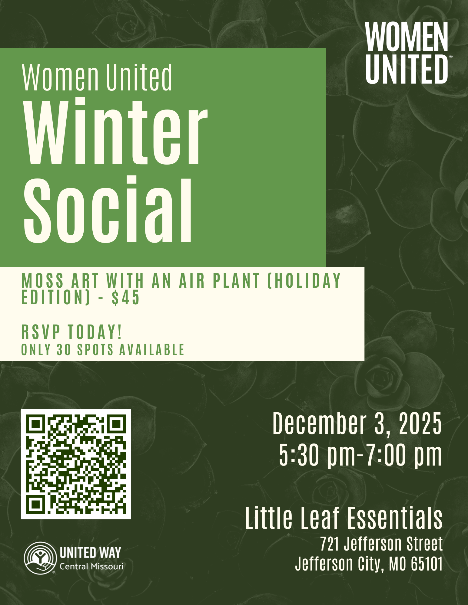 Please RSVP below if you would like to take part in the 2025 Winter Social being hosted at Little Leaf Essentials for Women United members. There is a limit of 30 individuals and the form will close once all spots have been reserved.